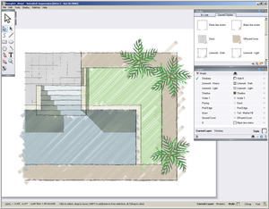 Autodesk Impression works with DWG files, DWF files, output from other products and makes them look phenomenal. Revision to the design take only minutes to update the Vespa output instead starting over with markers or post editing of a postscript file in a photo editor. Take what used to be a several hour or many day process into about 20 minutes. You can assign styles to layers or blocks, convert hatches to styles, have a block insert replaced by another block randomly scaled and rotated to prevent that same tree copied look. It is just plain fun and effective.