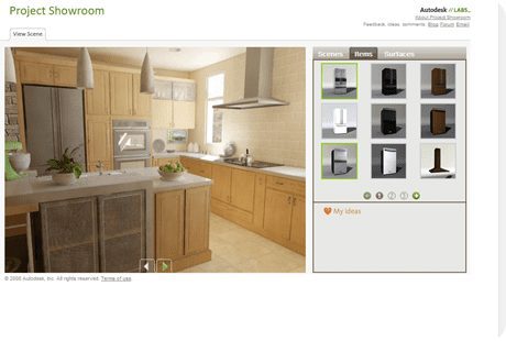 Project Showroom demonstrates an SaaSy idea we have been developing on to allow people customize a visualization based on materials and parts you can change. In other words you can do a remodel and see the different items you selected all nice and rendered immediately. It is pretty cool and gives a glimpse at house a company in the future may allow simple drag drop or changes to be reflected without having to know 3D design and using a rendering/visualization product as it is so simple even a caveman can do it. In the new version you can customize a kitchen and bathroom even change models of kitchen appliances, the floor, cabinet, or counter top materials