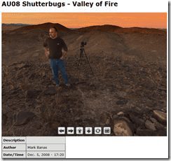 This is a 360 degree QuickTime/Flash Panoramic photo taken by Mark Banas at AU 2008. This is a group of us that gathered as the AU 2008 Shutterbugs. In the photo are Mark Banas, Chris Hall, Sean Twomey, and me, The location was Northeast of Las Vegas in the desert about 15 miles from the Valley of Fire (36°8’46"N, 114°51’36"W). We wanted to shoot a photo within Valley of Fire park but the sunset came too early as we were returning from the Hoover dam so we rushed up a hill near the road.