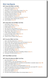 Autodesk Users Group International (AUGI) which is an independent user group of hundreds of thousands of Autodesk product users has a product wish list system. The latest submitted wish list items are now live and ready for you to vote on. The completed wish lists are provided to the Autodesk product teams for consideration in future releases and carries a great deal of importance and priority with the teams.