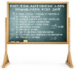 Scott Sheppard posted the Top Ten Autodesk Labs projects of 2011 (http://bit.ly/trVdkG) on the It’s Alive in the Lab blog. One big change in the Top Ten is that the technology preview that had held the number one download title since the founding of Autodesk Labs in 2006 had been unseated.