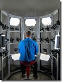 While there you can create a 3D textured model of your own head. With the very latest 123D Catch custom Photo Booth there are 24 DSLR cameras arranged in a booth with several large LED light units. You enter you email address then proceed to sit in the booth and align your head using the interactive feedback provided by a Kinect and then when your head ins in the right spot all the cameras fire at once. In a few minutes you are emailed links to download the model of your head. You can also just have someone take a series of digital photos of your head and submit them to 123D Catch to get your own head model without this fancy photo booth.