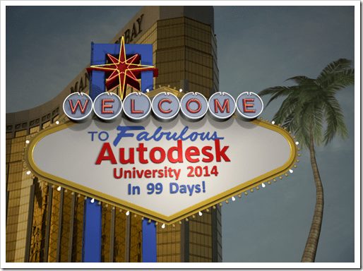 99 Days Until Autodesk University 2014 Autodesk University will begin December 2, 2014 in Las Vegas and we are now down to double digit countdowns!
