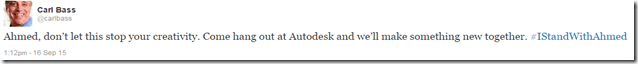 “Ahmed, don’t let this stop your creativity. Come hang out at Autodesk and we’ll make something new together.