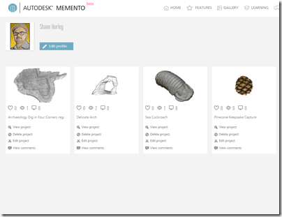 In the past 24 hours Autodesk has launched a new Memento Gallery where you can publish your Autodesk Memento 3D models for others to view or even download. I published models up there to test it and it works very well.