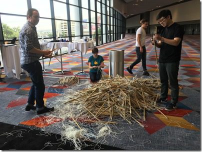 “Visitors to Autodesk University 2015 are invited to work with a robot through wearables and internet of things technologies to help build a 12′ high architectural pavilion using bamboo.