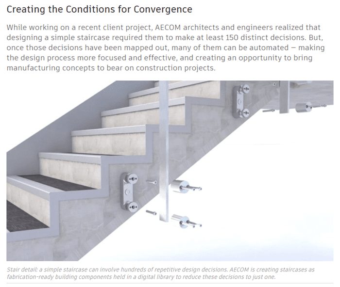 This is a good article detailing a customer case and how AECOM is working in the converging industries of manufacturing and AEC construction.