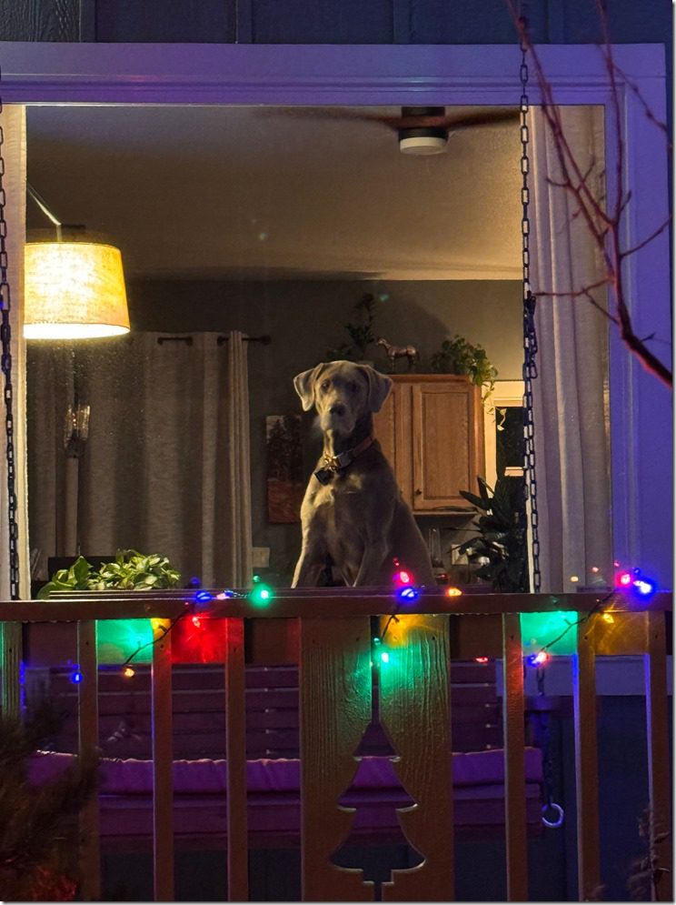 Poor Coho, our goofy 2-year-old silver labrador retriever had to stay inside with all the sirens and lights going on. So, he stood in the front window and stared and glared at us the whole time.