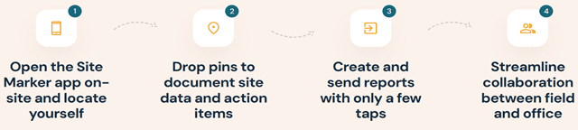 Site Marker's reporting feature streamlines the documentation of site conditions, consolidating notes and images into geolocated pins.