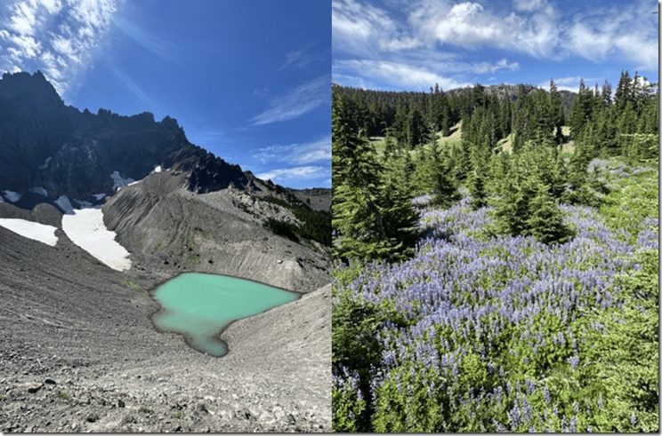 Then, on Sunday, we hiked 7 miles with a 2,000-foot elevation gain into the Mt. Jefferson Wilderness. With a wilderness day permit in hand, We made it to the glacier on Three Finger Jack. The hike was made even better by the intoxicatingly sweet scents and breathtaking views of wildflowers along Canyon Creek and spotting a rocky mountain goat.