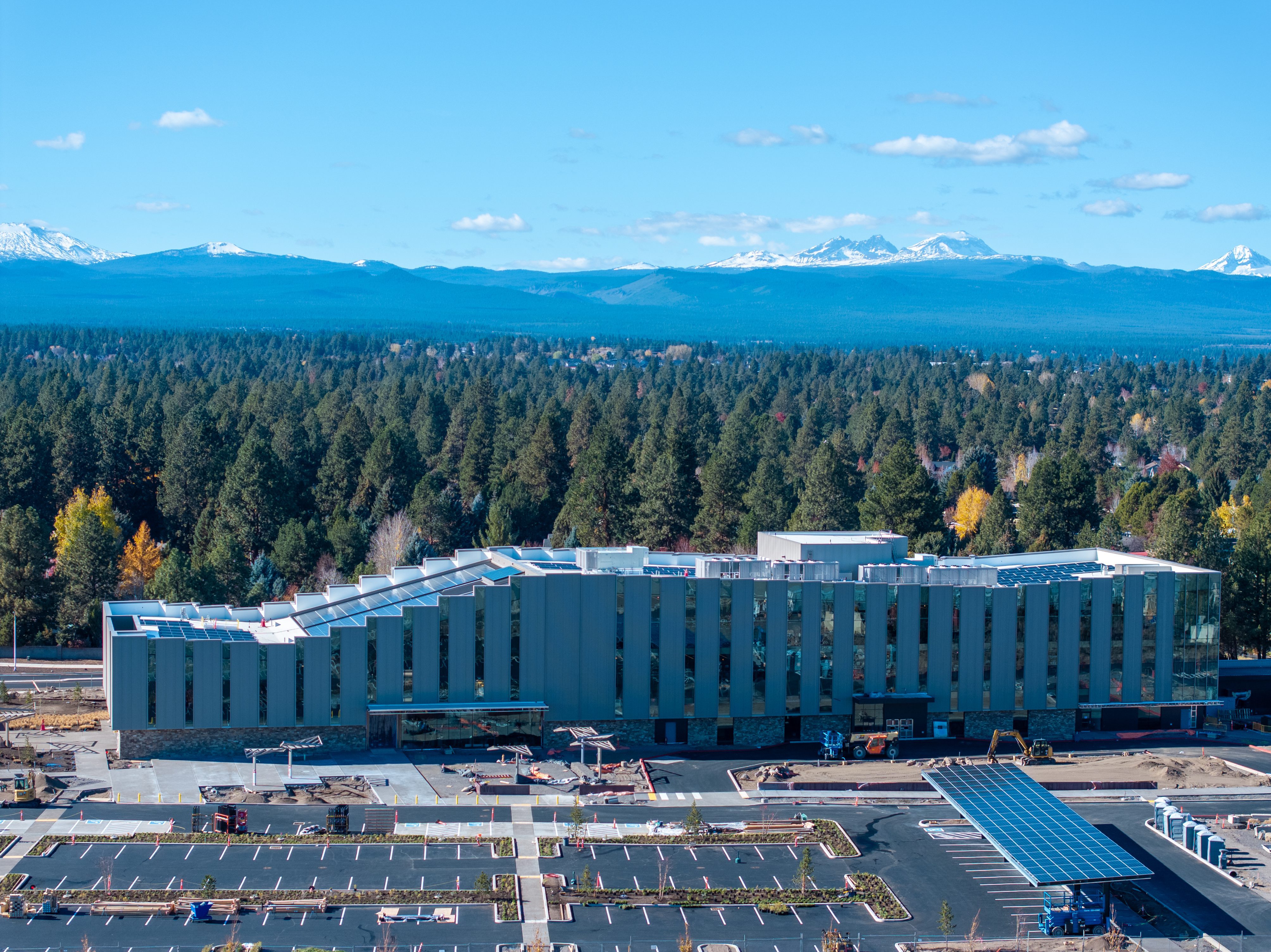 Architecturally, the building is impressive. The design team of Miller Hull Partnership, Steele Associates, and Kirby Nagelhout Construction combined sustainability with Central Oregon character. The exterior uses regional stone and dry-toned metal, while the roofline reflects the mountains and helps control light and heat. The structure uses mass timber, which has a lower carbon footprint than concrete or steel and creates a warm, natural interior.