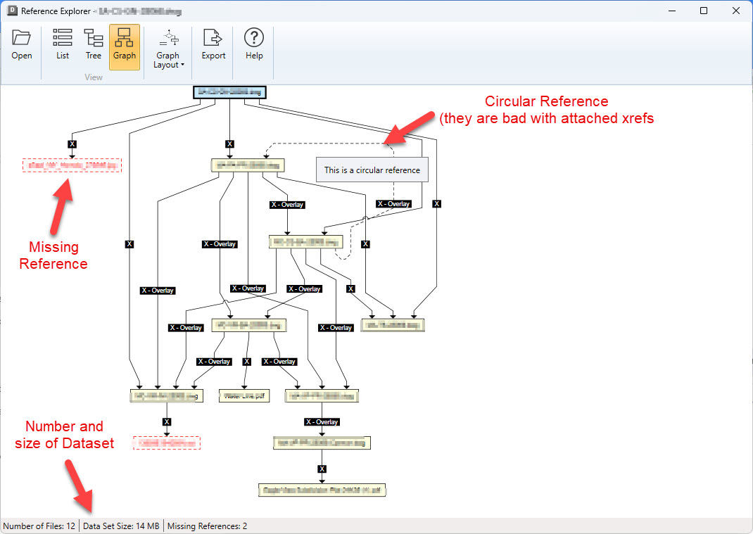 Here’s where it gets real for larger multi office design firms, datasets that grow in ways nobody fully tracks until something breaks. What Reference Explorer actually shows you are the domino chains. One bad reference cascades into 3 others, those 3 into more, and suddenly nothing in the drawing resolves and the project is on fire at 4pm Friday. Bottom left corner gives you file count and total size. Look at those numbers before you touch anything.